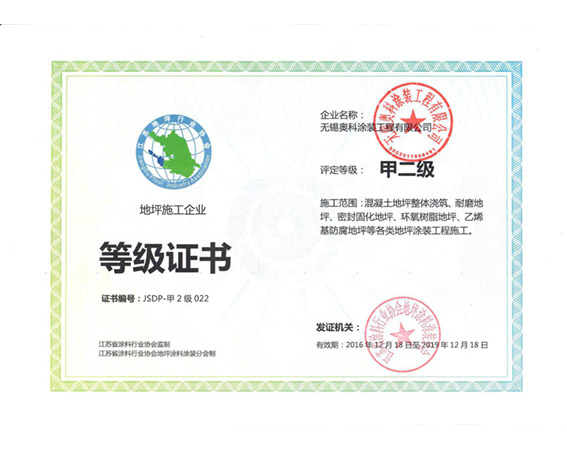 貳級專業施工資質,團隊人員結構年輕且富有創(chuàng)意,一直學習創(chuàng)新,并不斷引進優(yōu)質施工設備 ,爭做地坪行業引領者